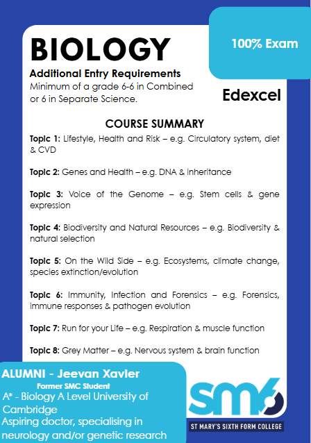 Entry Requirements: GCSE 6-6 in Combined Science or 6 in Biology